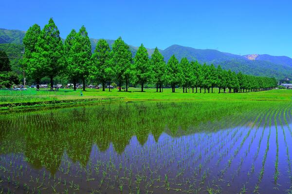 This picturesque 2.4 km-long straight avenue features about 500 Metasequoia (dawn redwood) trees, creating a breathtaking green tunnel. It was selected as one of the New 100 Roadside Tree Views by Yomiuri Shimbun. The road transforms beautifully across all four seasons: